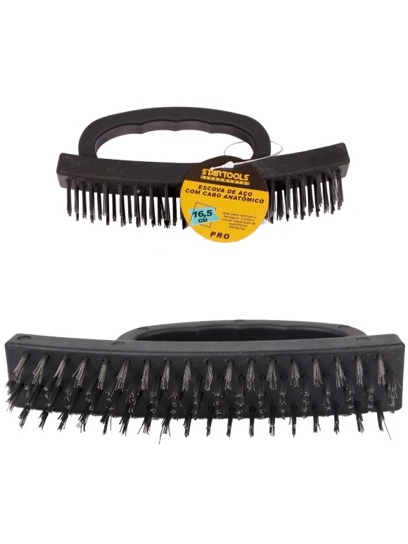 ESCOVA DE ACO C/CABO ANAT. DE PLAS. PRETA UN.