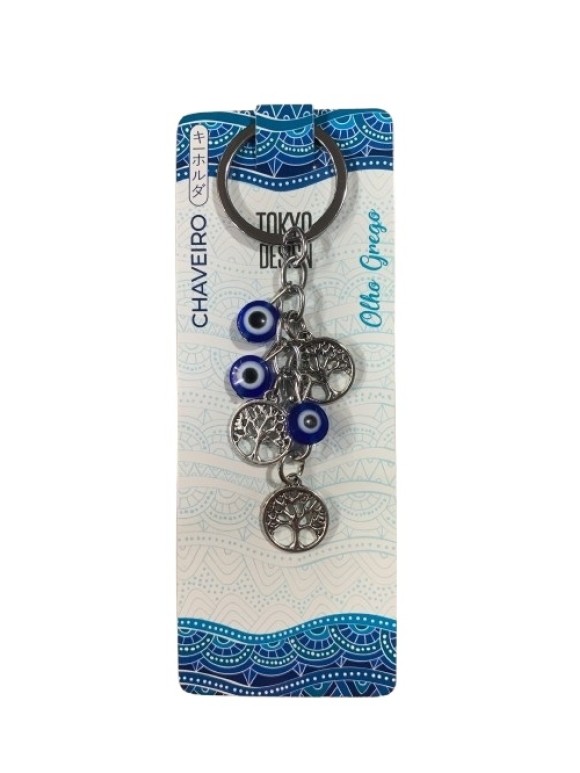 CHAVEIRO ARVORE DA VIDA E OLHO GREGO DE METAL UN. MULTIART