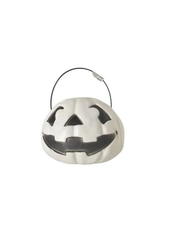 Caldeirão Abóbora G Branca Decoração de Halloween Enfeite Grande Porta-Doces para Festas