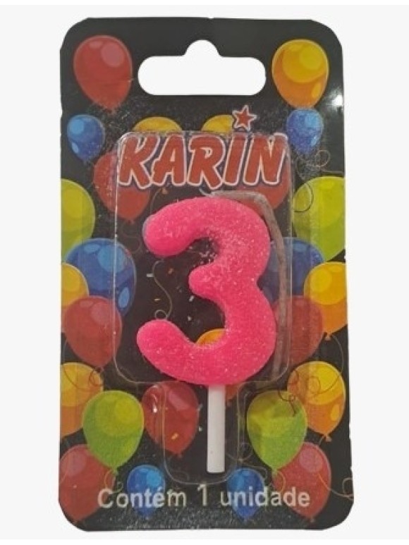 2. VELA DE ANIVERSARIO N.3 ROSA C/ GLITTER UN. KARIN